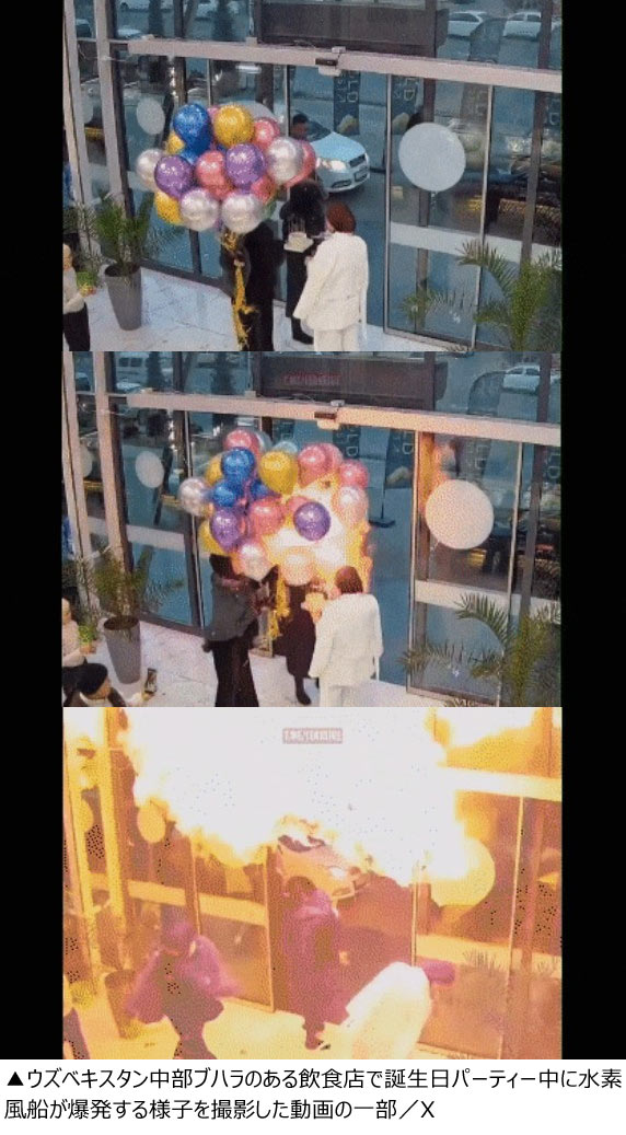 ウズベキスタンで誕生日パーティー中に水素風船が爆発する事故が発生した。