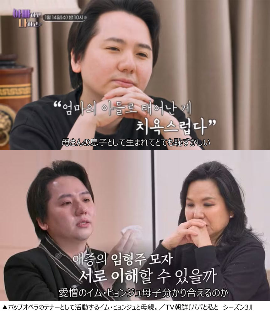 ポッペラ(韓国のポップオペラ)のテナー歌手、イム・ヒョンジュが、愛憎関係にある母親と共に初めてリアリティー番組に出演する。
