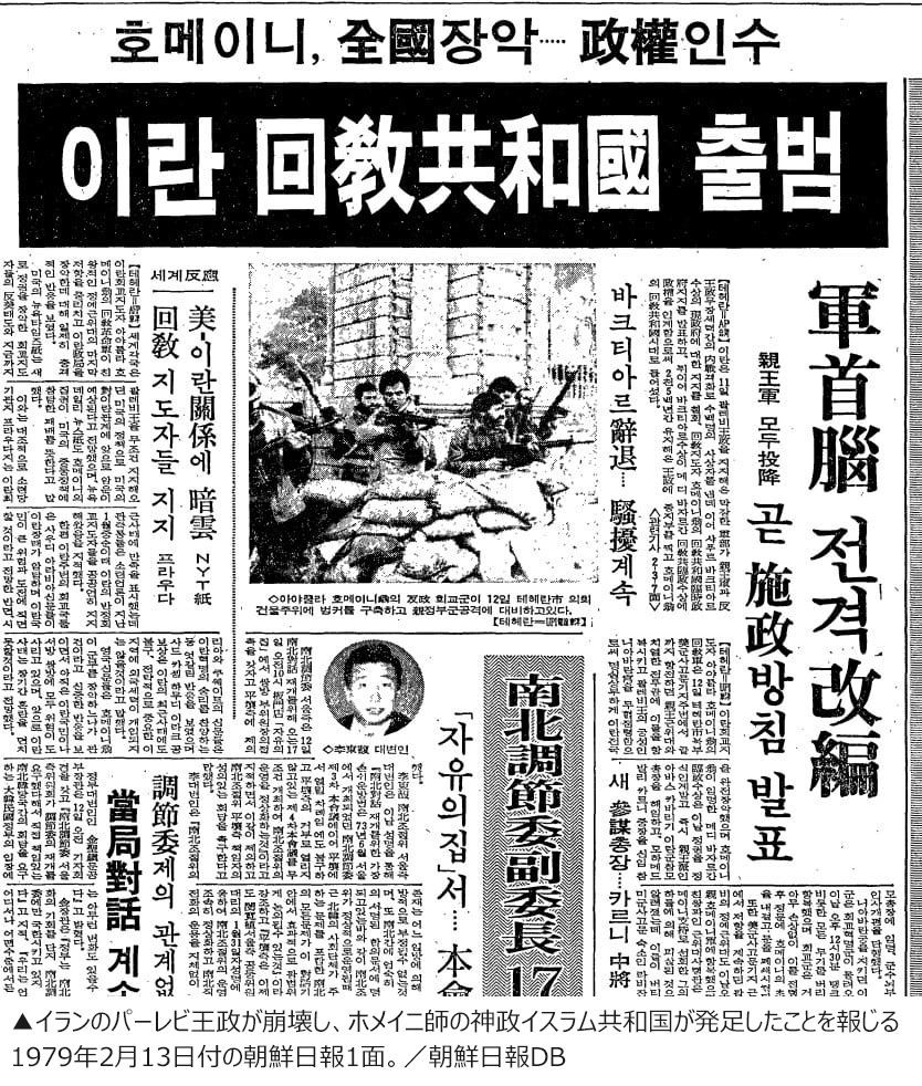 【写真】ホメイニ師の神政イスラム共和国が発足したことを報じる1979年2月13日付の朝鮮日報1面