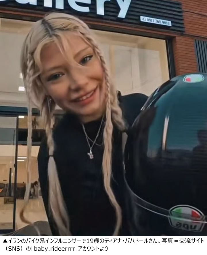 報道によると、イラン人権メディア「イラン・ワイヤー」は交流サイト(SNS)「インスタグラム」で、「『ベビーライダー』として知られていたディアナ・バハドールさん(19)が1月9日、イラン北東部ゴルガーンで行われた反政府デモ中にイラン軍の銃撃を受けて亡くなった」と伝えたとのことだ。