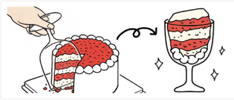 ケーキナイフがない時は、ワイングラスをケーキの上にかぶせてカットしよう。カップの中にケーキが入り、きれいにすくって食べられる。