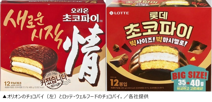 1月22日、関連業界によりますと、オリオンとロッテ・ウェルフードは特定の製品がヒットするたびに、似たようなコンセプトの製品を互いに発売(Me Too)し合うなど、販売競争を50年以上も続けてきました。最近、その競争に火を付けたのはオリオンです。今回オリオンが発売した新製品「シャル・ウィー」は、自社の代表製品「チョコパイ・ジョン(情)」に使用されるマシュマロに代わって生クリームを入れたチョコパイです。ロッテ・ウェルフードの「モンシェル」に似せた商品というわけです。後発走者のオリオンは、抱き合わせ販売を基準に「シャル・ウィー」の値段をモンシェルよりも安く設定しました。
