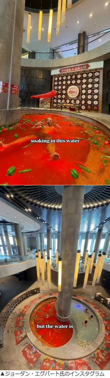 ネットでは「ハラペーニョが繊細な部位を熱々にしませんか?」「これは本当にすごい。いつか必ず行きたい」「ここは温泉業界のディズニーランドのようだ」「本当に狂ってる。こんなのは初めて見た。ちょっと気持ち悪いが不思議でとても良い」などのコメントが相次いだ。