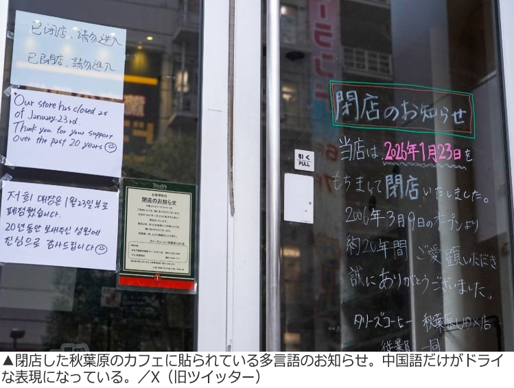 日本のあるカフェに貼られた多言語の「閉店のお知らせ」が注目を集めている。中国語バージョンだけ、とりわけ冷淡な表現になっているのだ。