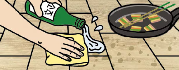 旧正月を迎えるための料理を作っている時、床に油が飛び跳ねてベタ付いてしまったら、焼酎を少し振りかけてからモップ掛けをすると、焼酎のアルコール成分が油分を溶かしてスッキリ拭き取れる。