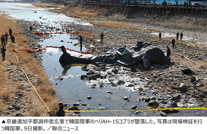 9日午前11時4分ごろ、京畿道加平郡で緊急手順の訓練を行っていた第15航空団大隊所属の陸軍ヘリAH-1Sコブラが墜落した。墜落した原因は不明。