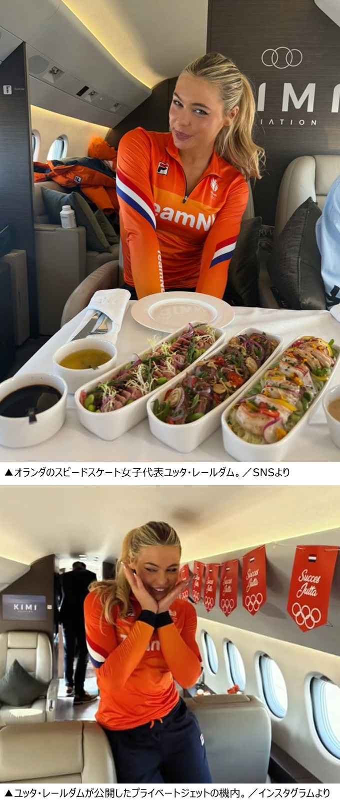 しかし、スター選手でインフルエンサーであるレールダムが勝負の場以外で見せる振る舞いを巡っては、現地ファンたちが眉をひそめている。物議を醸したのはレールダムがミラノ入りする際にオランダ代表チームと行動を共にせず、婚約者がプレゼントしてくれたプライベートジェットに乗って移動したことだ。レールダムはこのとき、インスタグラムに、五輪のフラッグが飾られたプライベートジェットで五輪マークの付いたデザートを楽しみながら友人たちと過ごす写真を投稿した。華やかな機内食の前でポーズを取る写真もあった。