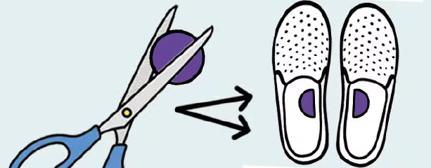 丸いシールを半分に切り、室内履きの中敷きの内側に1枚ずつ貼ると、左右の区別が付きやすい。
