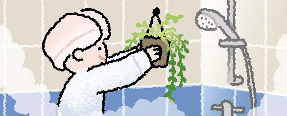 バスルームの壁にハーブの鉢を掛けると、シャワーを浴びた時に出る湯気でハーブの香りが広がり、ほのかな香りを楽しむことができる。