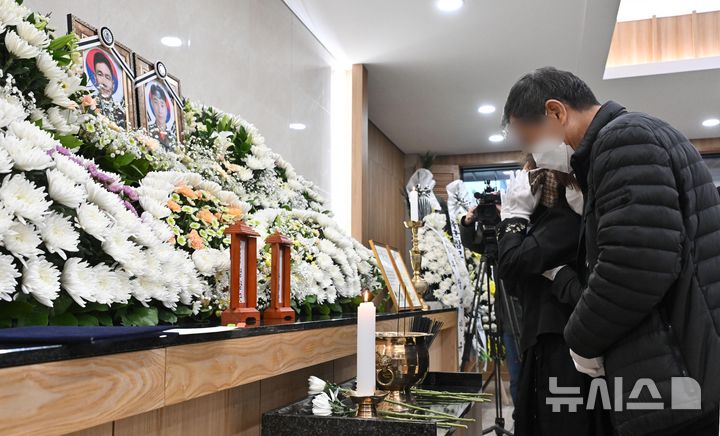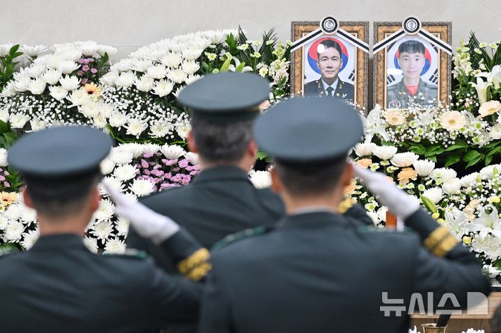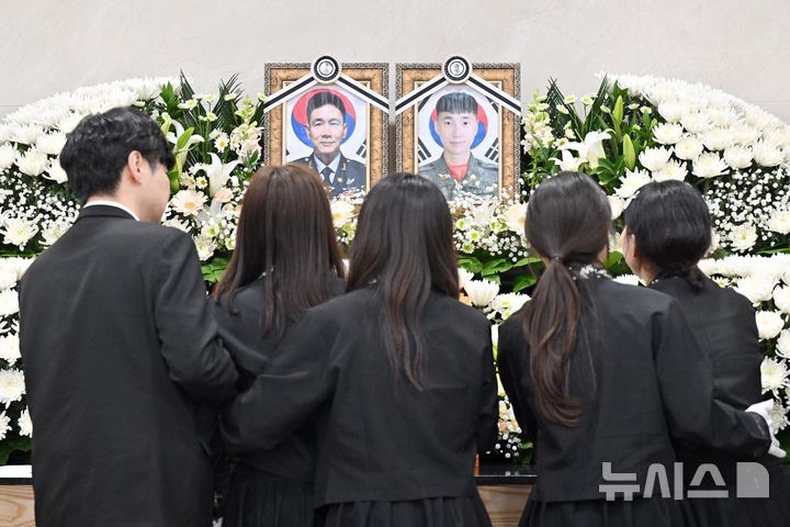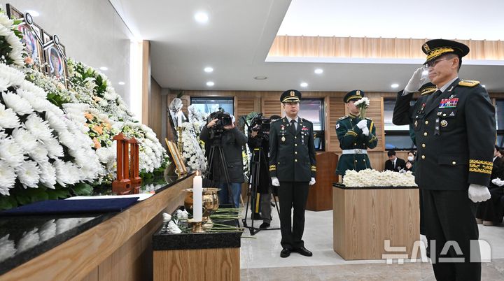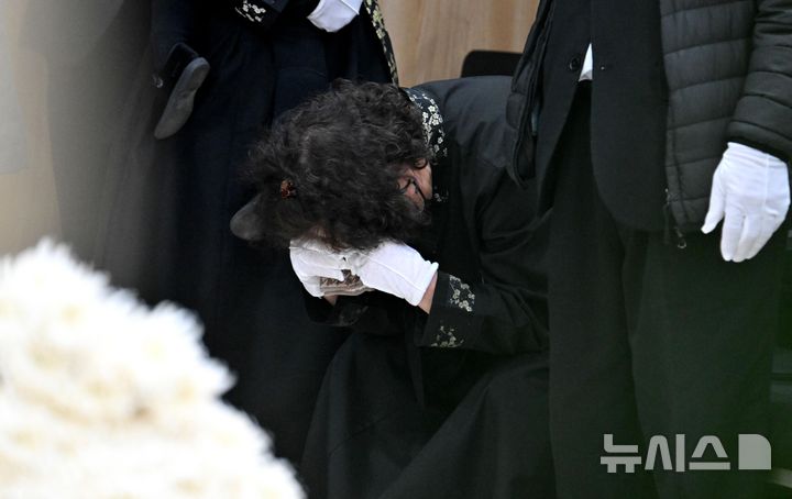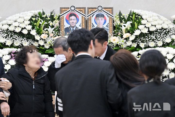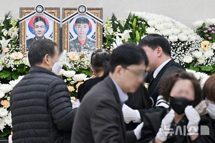 【NEWSIS】京畿道城南市盆唐区の国軍首都病院葬儀場で12日午前、コブラ・ヘリコプター墜落事故で殉職した故チャン・ヒソン准尉、チョン・サングン准尉の告別式が厳かに執り行われ、涙を流している遺族たち。