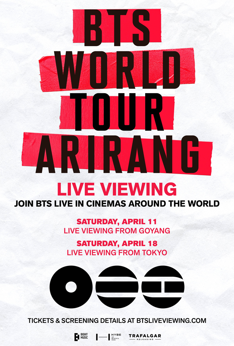 【ソウル聯合ニュース】韓国の人気グループ、BTS(防弾少年団)が4月から開催するワールドツアー「ARIRANG」の高陽公演と東京公演のライブビューイングが75カ国の3500カ所以上の映画館で行われる。所属事務所のビッグヒットミュージックが13日、発表した。