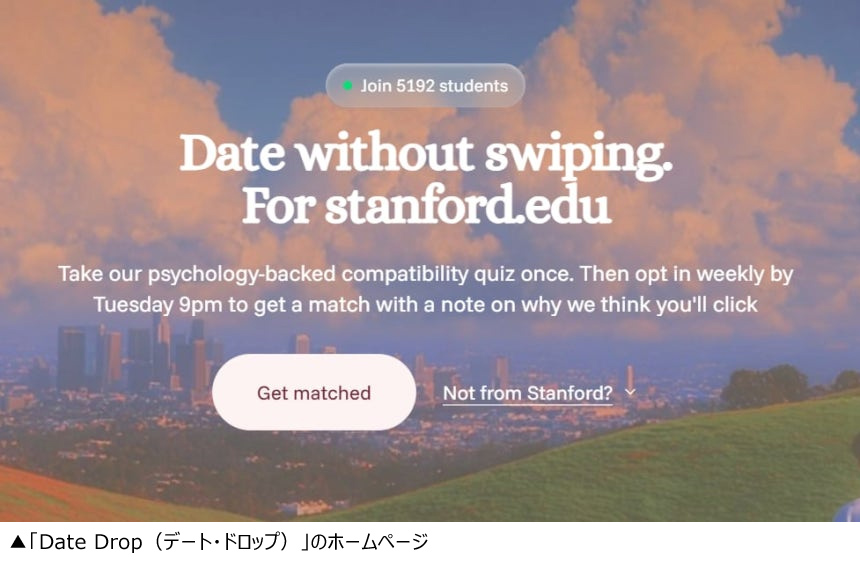 報道によると、昨年9月に利用開始となり、米スタンフォード大学で流行している学生間マッチングアプリ「Date Drop(デート・ドロップ)」が他大学でも大きな人気を集めているとのことだ。