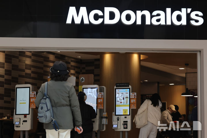 【NEWSIS】韓国マクドナルドが、20日から主なメニューの価格を100-400ウォン(現在のレートで約11円-43円)値上げすると発表した。対象品目は全79メニューのうち35メニュー(44%)で、平均値上げ率は2.4%だ。写真は19日、ソウル市内のあるマクドナルド店舗の様子。