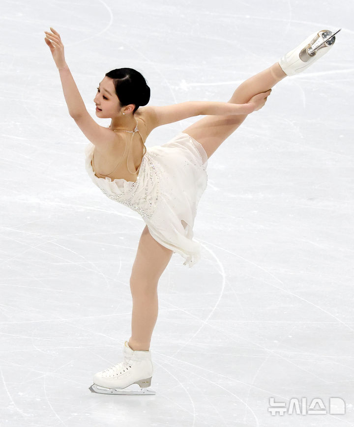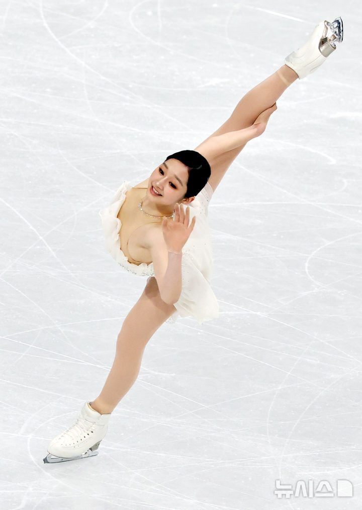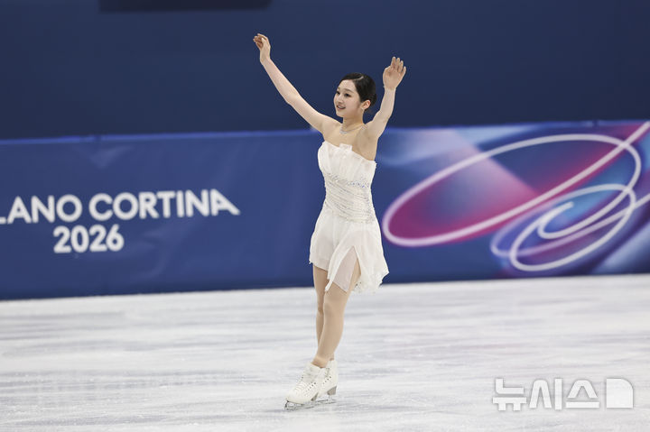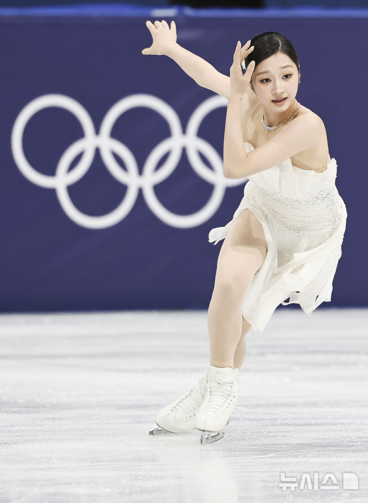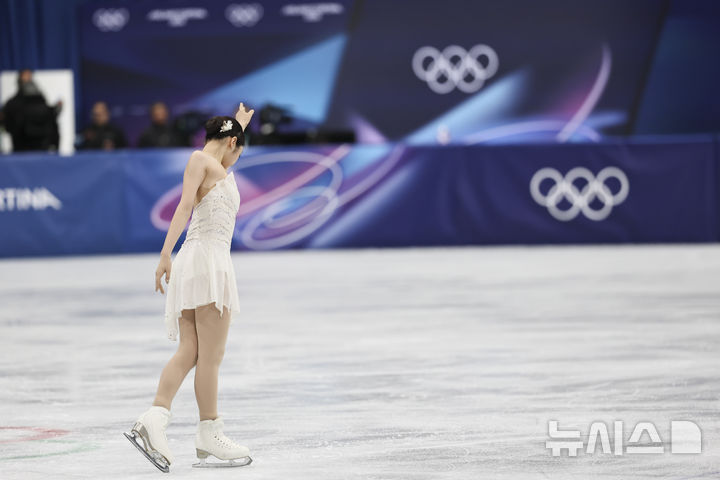 【NEWSIS】19日(現地時間)、イタリアのミラノ・アイススケートアリーナで、2026年ミラノ・コルティナ冬季五輪フィギュアスケート女子シングルのフリーが行われた。写真は初オリンピックで懸命に演技する辛智娥(シン・ジア)。