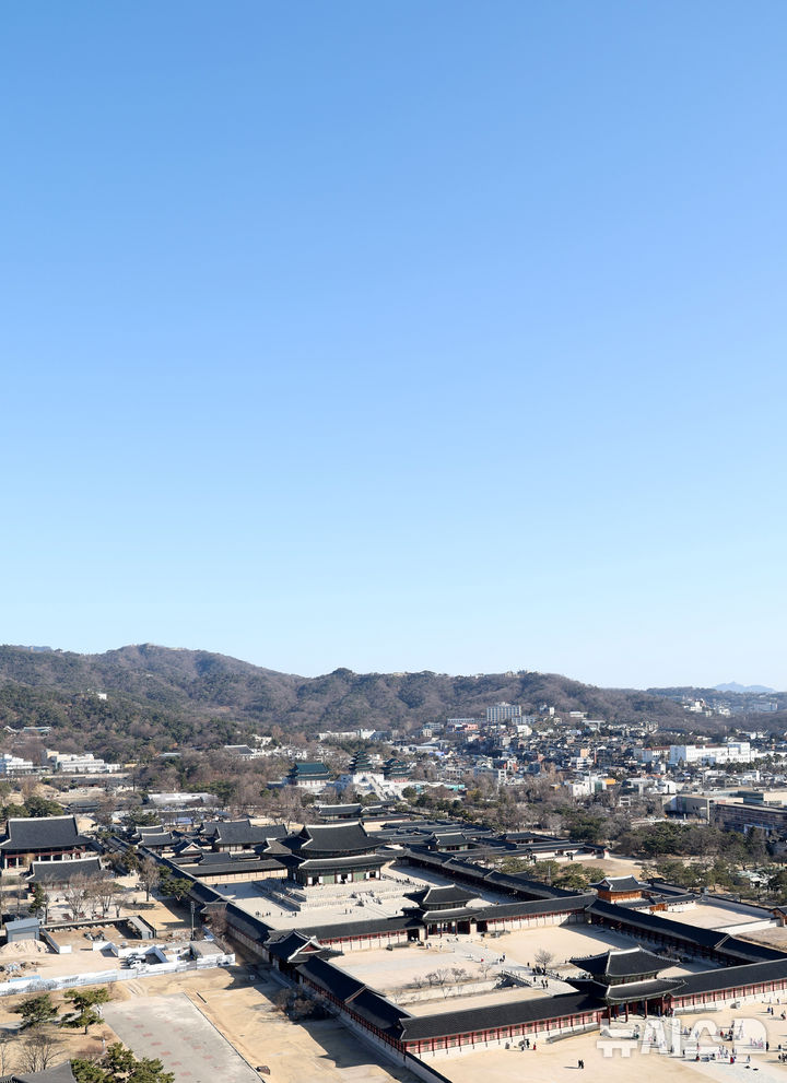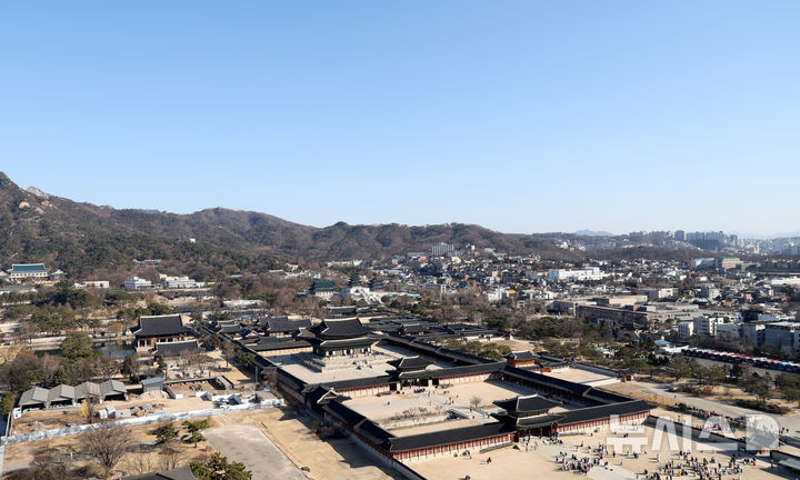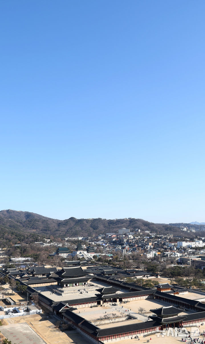 【NEWSIS】よく晴れた23日午前、ソウル市鍾路区の景福宮の上に青空が広がっていた。