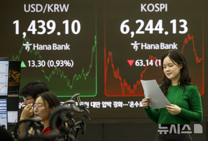 ソウル外国為替市場のウォン・ドル相場は、前取引日(1ドル1425.8ウォン)より13.9ウォンのウォン安となる1ドル1439.7ウォンで昼の取引を終えた。