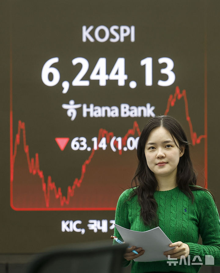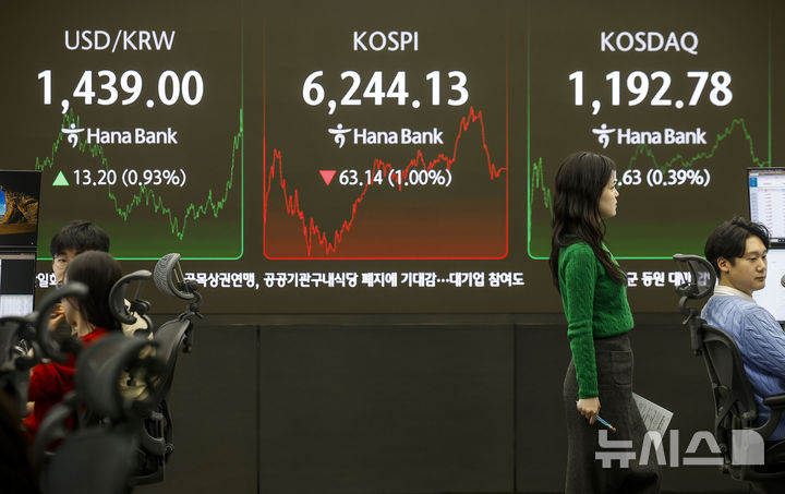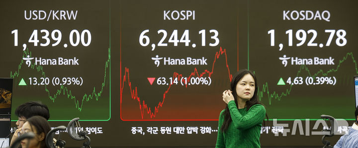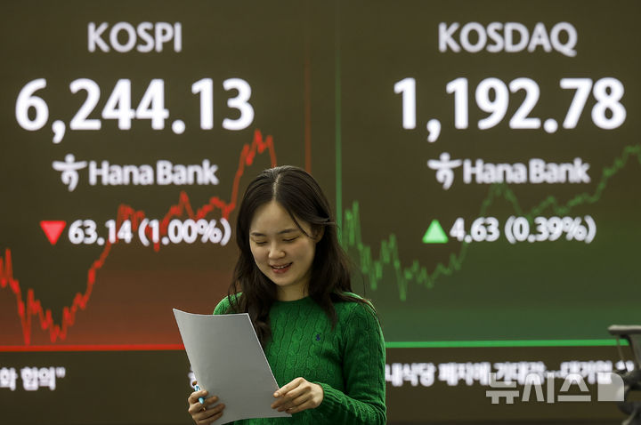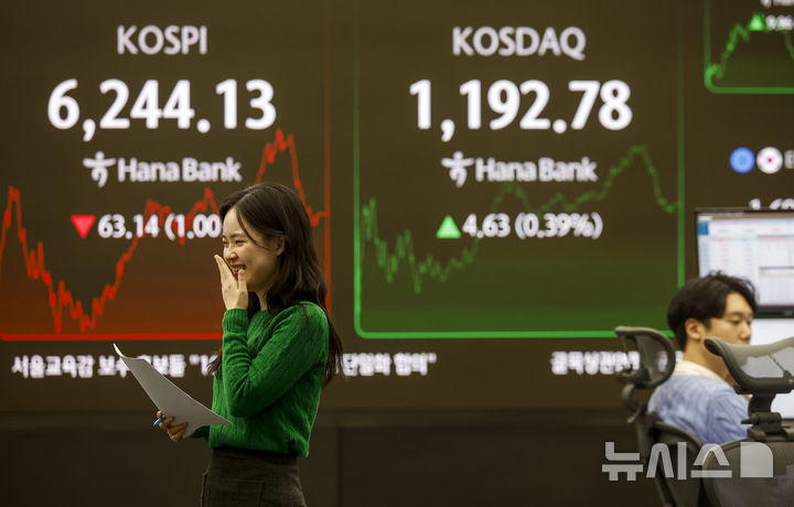 この日、KOSPIは前取引日(6307.27)より63.14ポイント(1.00%)低い6244.13、KOSDAQ指数は前取引日(1188.15)より4.63ポイント(0.39%)高い1192.78で取引を終えた。