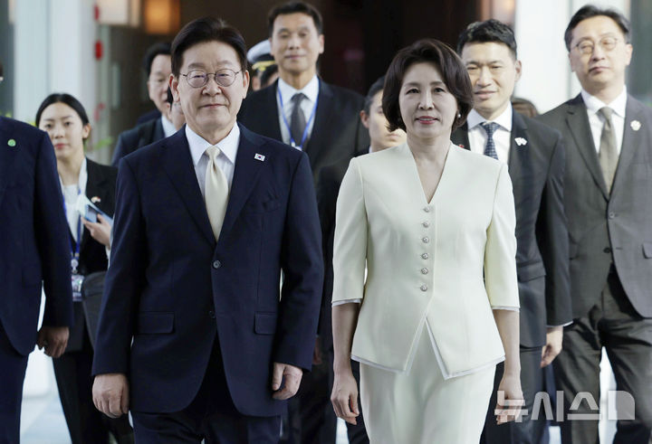 【NEWSIS】シンガポールを国賓訪問した李在明(イ・ジェミョン)大統領と金恵景(キム・ヘギョン)夫人。1日(現地時間)、シンガポール・チャンギ国際空港に到着した。