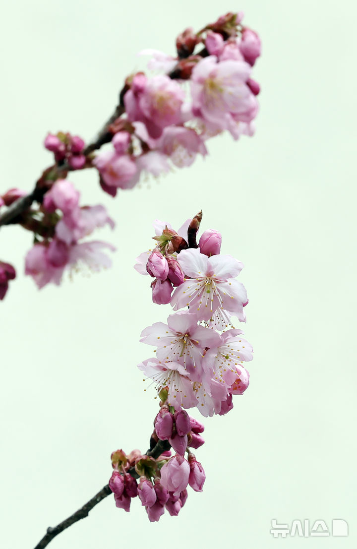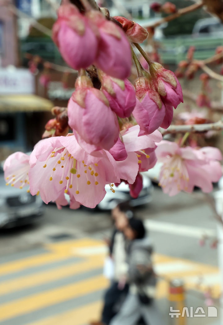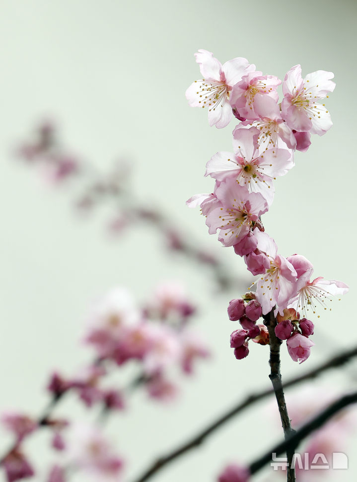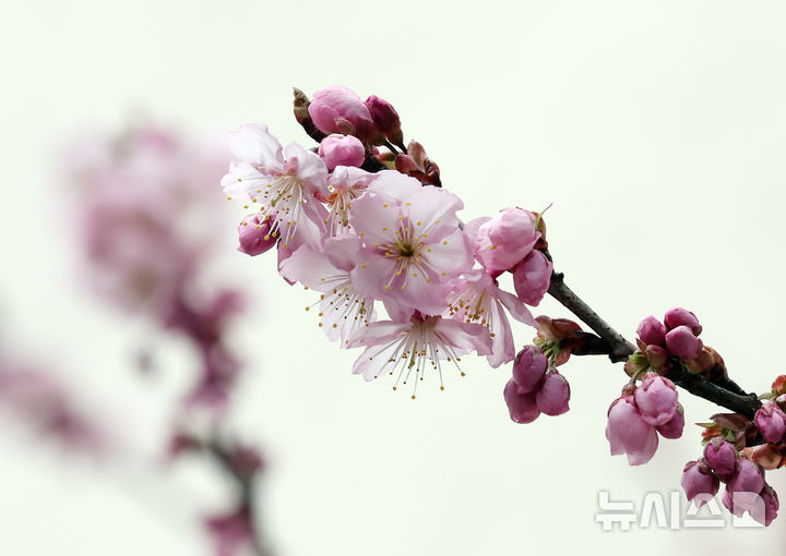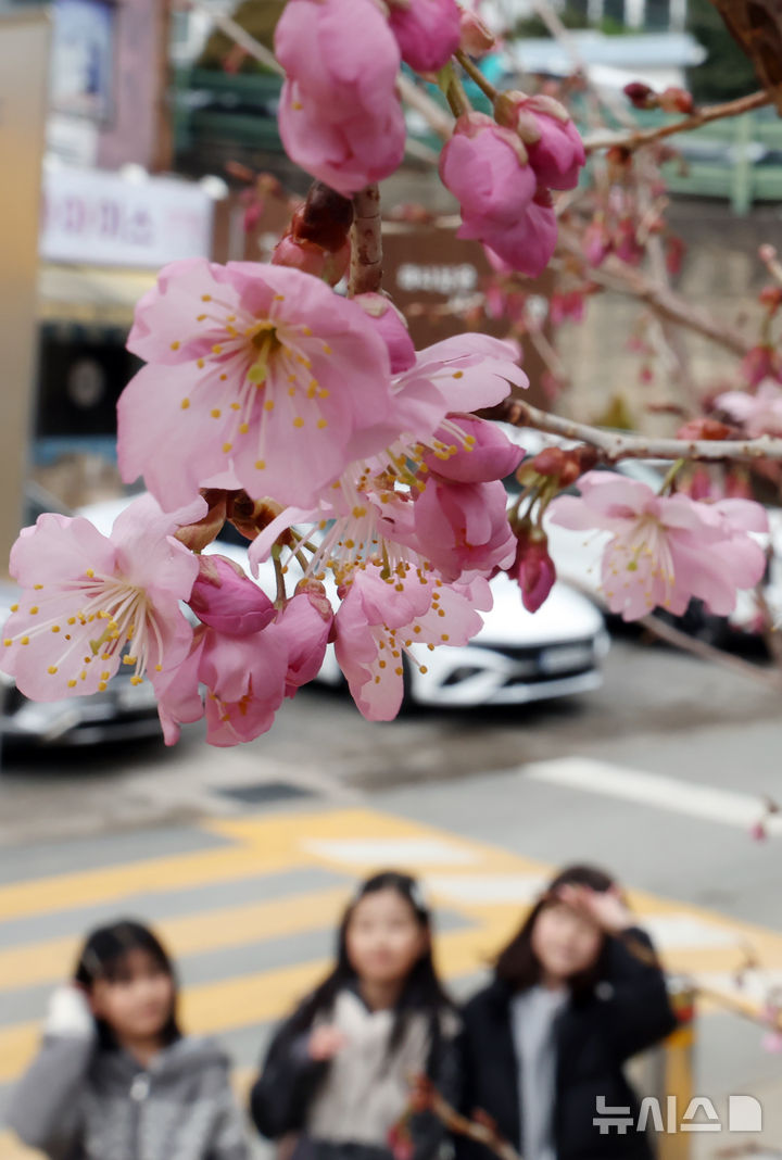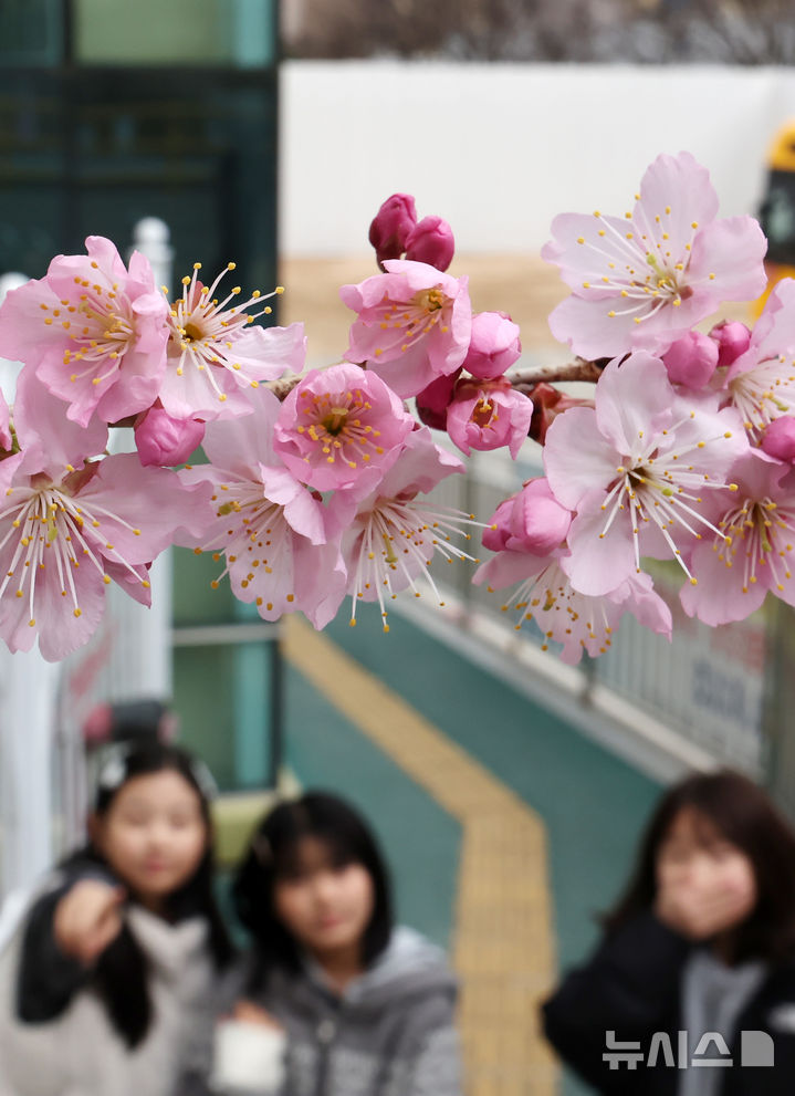 【NEWSIS】冬ごもりをしていた生き物が出てくるとされる二十四節気の一つ「啓蟄(けいちつ)」まであと四日となった1日、釜山市水営区の培花学校で、桜のつぼみがほころび始めていた。
