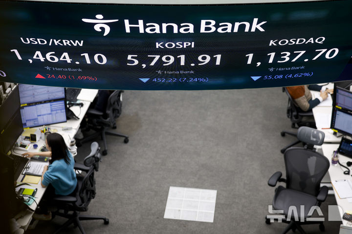 この日、KOSPIは前取引日(6244.13)より452.22ポイント(7.24%)低い5791.91、KOSDAQ指数は前取引日(1192.78)より55.08(4.62%)低い1137.70で終了した。