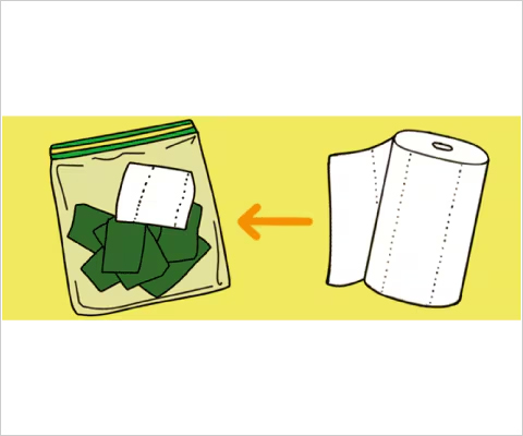 昆布は湿気とにおいを吸収しやすい。ファスナー付きビニール袋や密閉容器に入れ、涼しい場所で保存しよう。キッチンペーパーの切れ端を一緒に入れておくとなお良い。