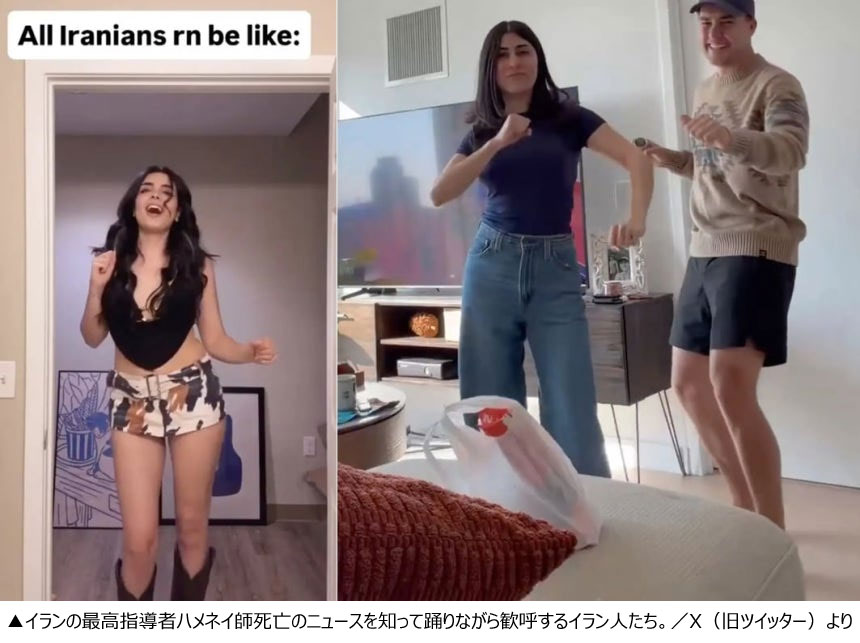 米国とイスラエルによる空爆でイランの最高指導者ハメネイ師が死亡した後、SNS(交流サイト)には踊りながら歓呼するイラン人たちの動画が相次いで投稿されている。