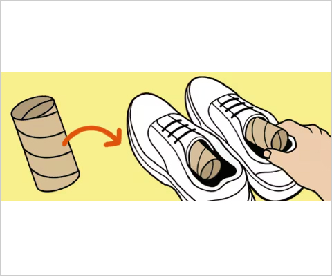 トイレットペーパーの芯は捨てずに取っておき、靴の中に一つずつ入れると、紙が湿気を吸収して靴の中が湿っぽくなるのを防いでくれる。