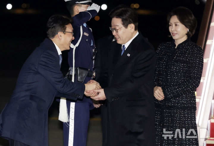 【NEWSIS】シンガポールとフィリピンへの国賓訪問を終えた李在明(イ・ジェミョン)大統領と金恵景(キム・ヘギョン)夫人が4日、韓国空軍第1号機(大統領専用機)で京畿道城南市のソウル空港に到着した。