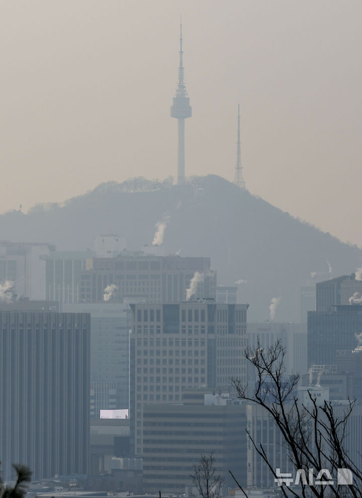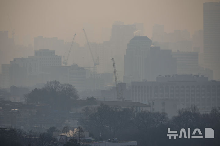 【NEWSIS】微小粒子状物質(PM2.5)の濃度が上昇した10日、ソウル市中心部はかすんで見えた。
