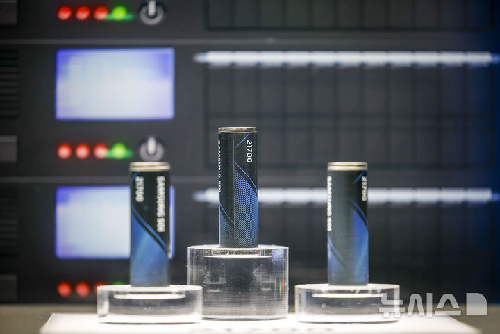 【NEWSIS】11日、ソウル市江南区のCOEXで開かれたインターバッテリー2026で、サムスンSDIの円筒形バッテリーが展示されている様子。