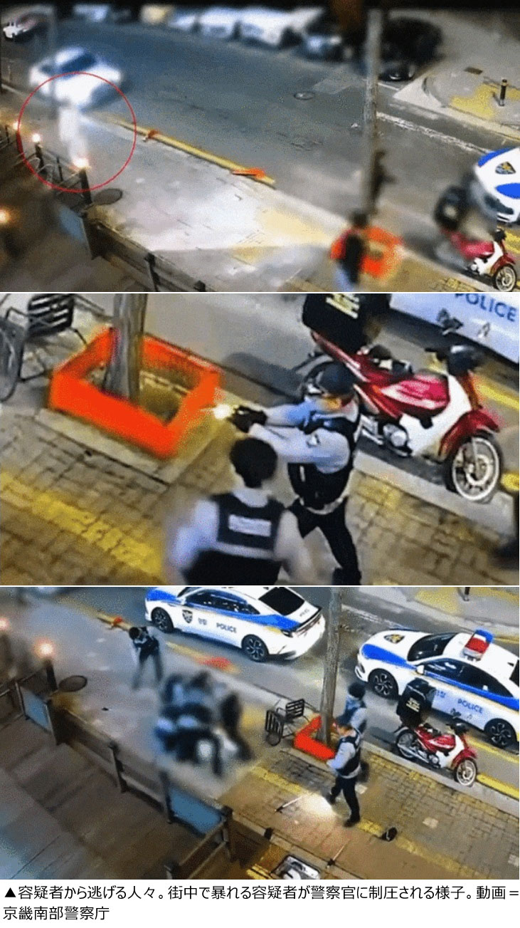 【写真】街で暴れる容疑者と警察官に制圧される様子