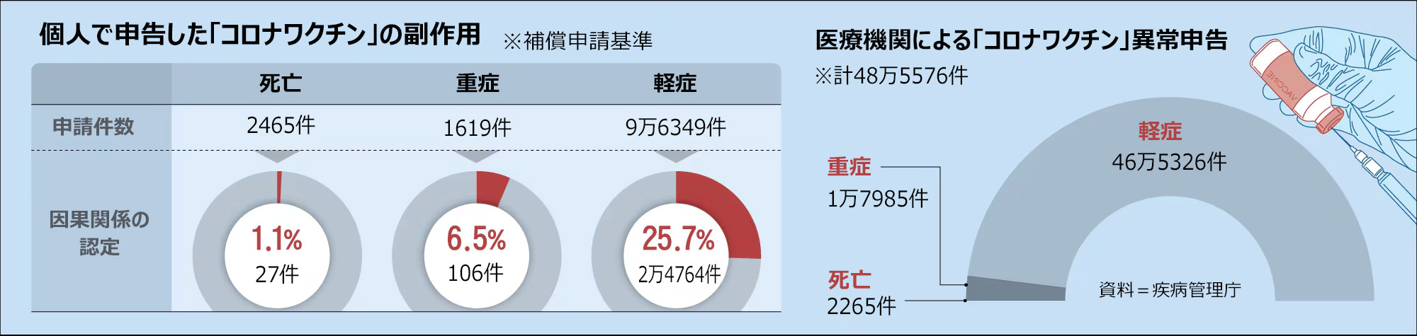 【図】「死亡・重傷・軽傷」 新型コロナワクチン接種後の副作用申告件数