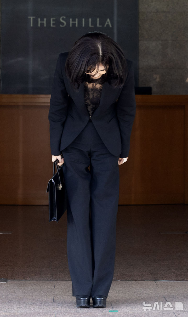 【NEWSIS】19日午前、ソウル市中区のサムスン電子奨忠ビルで開催された定時株主総会を終えた後、同ビルを後にするホテル新羅の李富真(イ・ブジン)代表取締役社長。