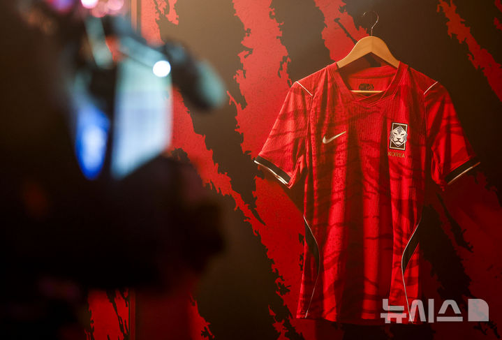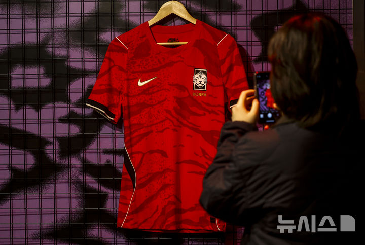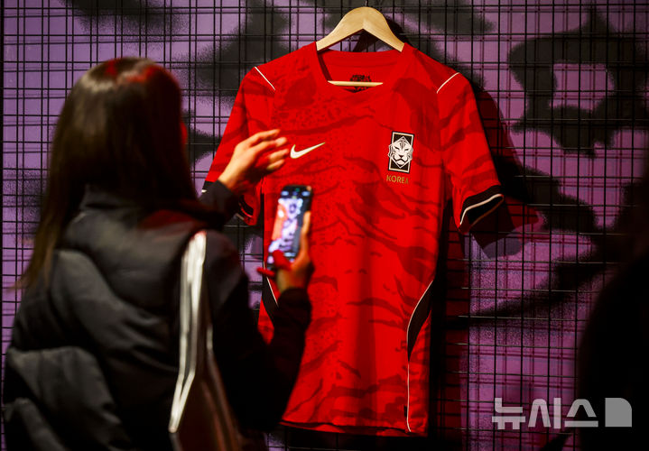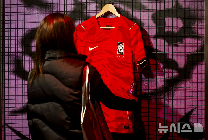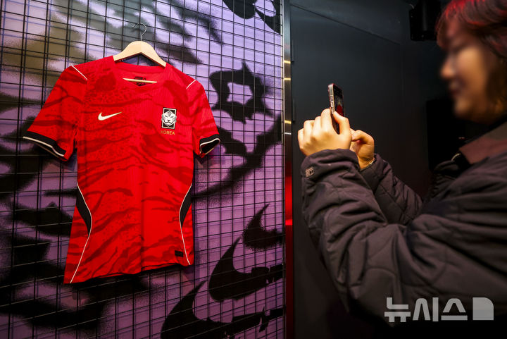 【NEWSIS】19日、ソウルの江南駅近くに設置されたNIKEの没入型体験ゾーンで、2026年サッカー韓国代表チームのホームユニフォームが公開された。