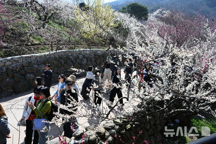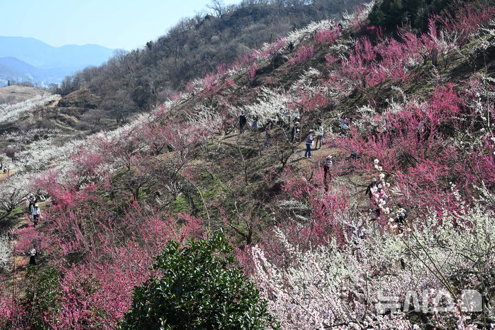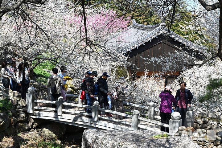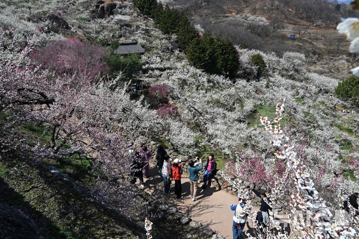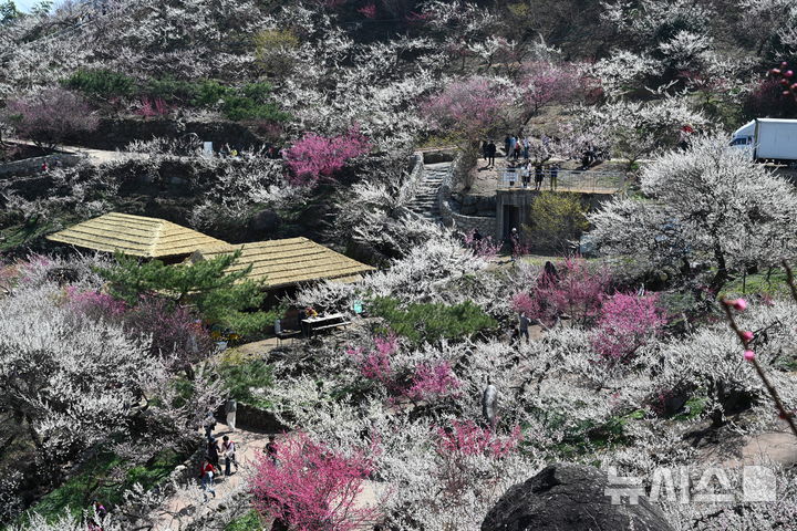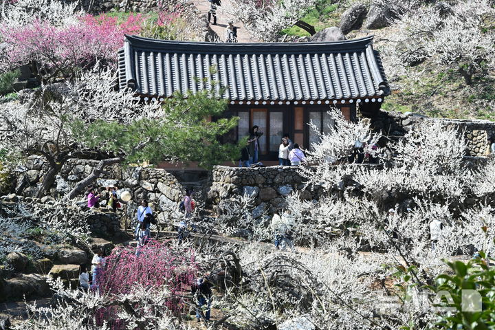 【NEWSIS】二十四節季の一つで春の始まりを告げる春分があすに迫った19日、全羅南道光陽市多鴨面の梅花村では、ウメの花が満開を迎えていた。