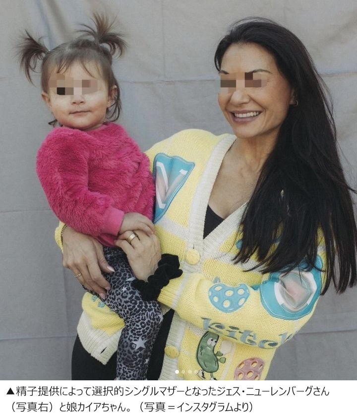ニューレンバーグさんは、米国の精子バンク「ザイテックス(Xytex)」で、自身の価値観に合うと判断した精子提供者を選び、複数回の体外受精を経て2024年に娘カイアちゃんを出産した。
