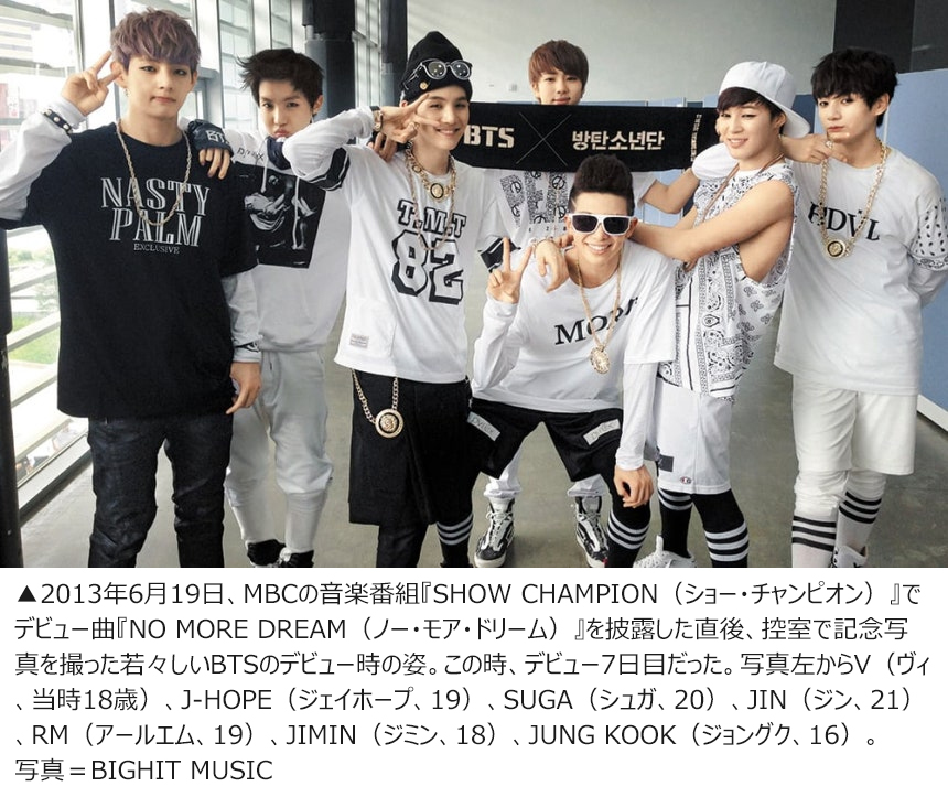 2013年6月13日、BTSのデビューは見栄えのしないものだった。彼らの代表的な形容詞は「中小芸能事務所が作った『泥のスプーン』グループ」。韓国語で泥のスプーンとは低所得層出身者を指す。所属事務所BIGHIT MUSIC(ビッグヒット・ミュージック)は当時、K-POPのヒット作曲家パン・シヒョク氏が設立した芸能事務所で、「一時的な期待」は集めたものの、韓国の3大音楽プロダクション(SMエンターテインメント・JYPエンターテインメント・YGエンターテインメント)に食い込むどころか、2012年のガールズグループGLAM(グラム)をはじめとする同事務所所属のグループはどれも振るわなかった。BTSはデビューアルバム『2 COOL 4 SKOOL』で10代ならではの勢いあるラップと卓越したダンスパフォーマンスで批評家から高い評価を受け、同年末の音楽授賞式で新人賞を受賞したが、韓国での音楽配信の成績は下位にとどまった。「10代への抑圧と偏見を防ぐ少年たち」という意味のグループ名は「今は人気を得るためにこんな名前までつけるんだね」と嘲笑された。