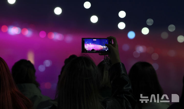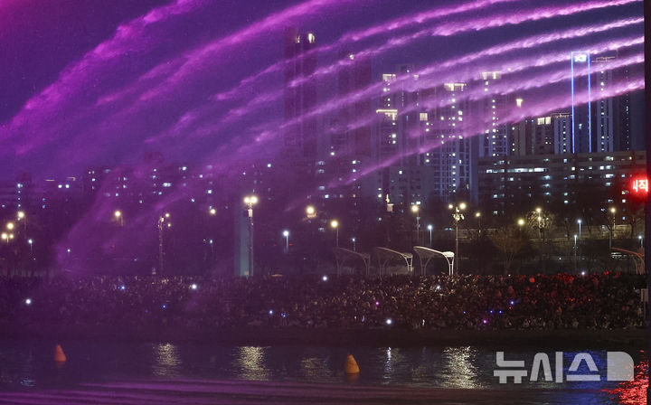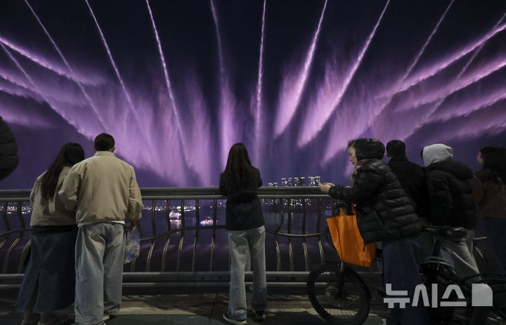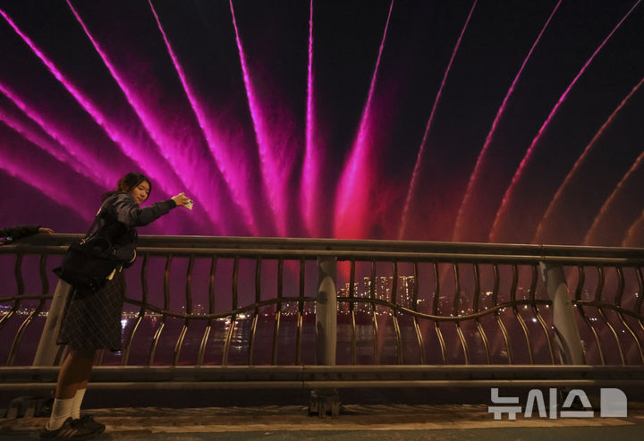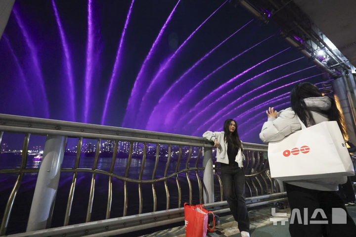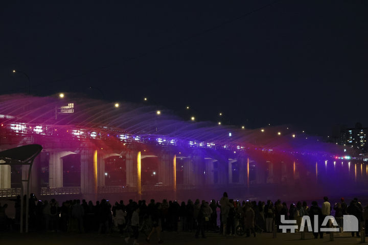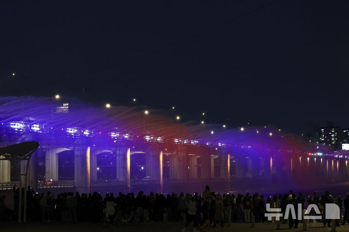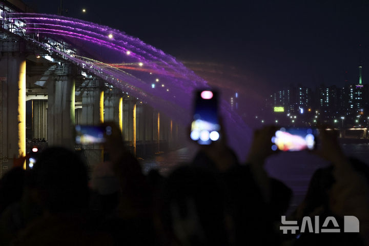 【NEWSIS】22日夜、ソウル市瑞草区の盤浦大橋で、男性アイドルグループBTS(防弾少年団)の曲に合わせて開催された月光レインボー噴水ミュージック・ライトショーの様子。