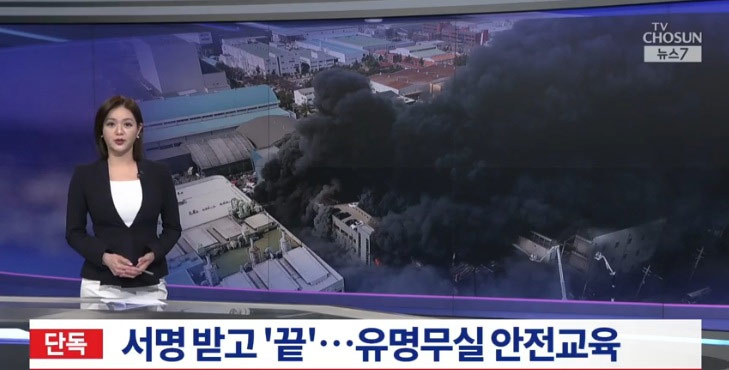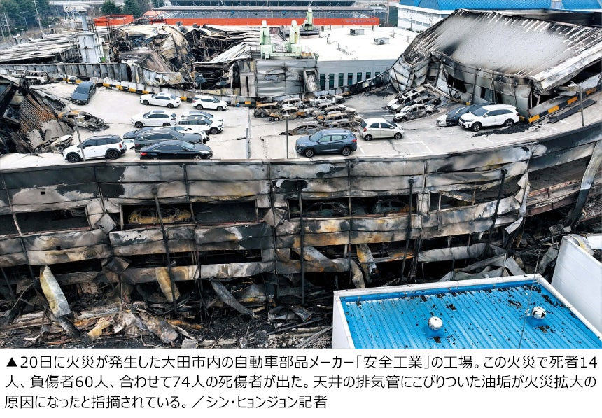 14人の死者を出した大田市の部品工場火災についてのニュースです。もともと工場内には火災拡大につながる引火性物質が大量にありましたが、普段から安全教育が十分に行われていなかったことが分かりました。工場側は、安全教育といっても従業員にサインをさせるだけだったようで、関連の証言が私たちの取材によって確認されました。キム・ジュンソク記者が独自にリポートします。