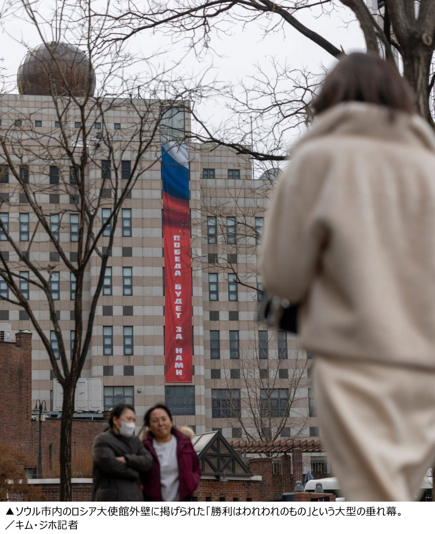 先日、駐韓ロシア大使館がロシア・ウクライナ戦争の発生から4年を迎え、ソウルのど真ん中で起こした出来事を見て、その時のことを思い出した。北朝鮮にも見下されたのだから、ロシアにも見下されるだろうという思いを振り払うことができなかった。ロシアは大使館の建物に「勝利はわれわれのもの」という垂れ幕を掲げ、激戦地クルスクの占領に寄与した北朝鮮について「北朝鮮軍の偉大さを忘れない」と述べた。「偉大な北朝鮮」などというフレーズは、北朝鮮の人民軍が本来どんな集団で、彼らが韓国の地でどんなことをしたのか知っていれば到底出てこない表現だ。朝鮮人民軍の起源は、中国の国共内戦当時に中共軍(中国人民解放軍)に味方した朝鮮義勇軍だ。そのときに積み上げた実戦経験を土台に、6・25(韓国戦争)で同族の胸に銃弾を撃ち込んだのだ。今回ロシアに派遣された北朝鮮軍も、現地で豊富な実戦経験を積んでいるのだから、有事の際にわれわれにとって大きな脅威となるのは間違いない。そのような状況で、ロシアは北朝鮮を称賛したのだ。「どうせお前たち(韓国)は何もできないだろう」といった調子だ。このように見下されてもわが国の政府はあいまいな態度でやり過ごした。全世界が韓国の対応を注視していた。