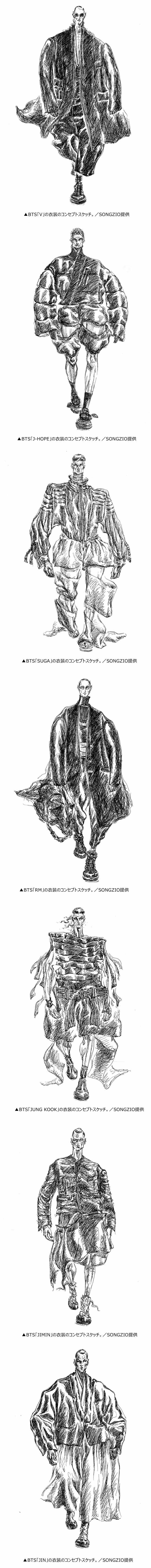 【写真】BTSメンバー一人一人の衣装コンセプトスケッチ