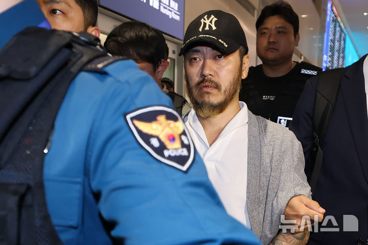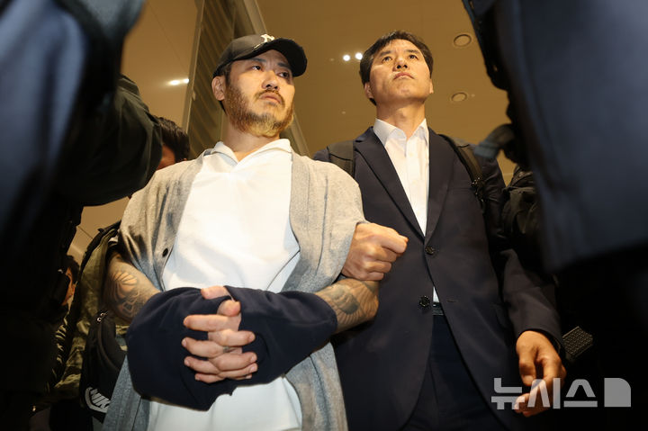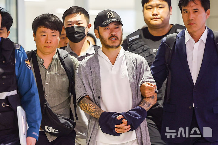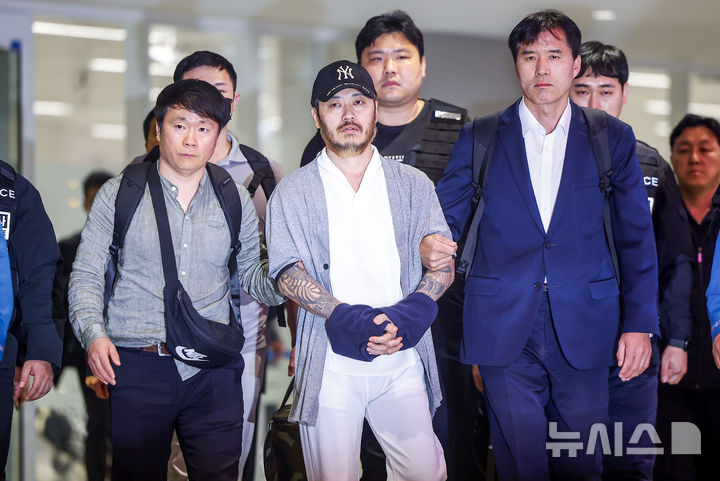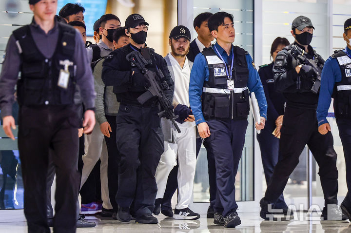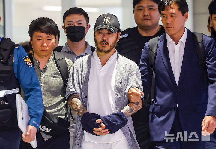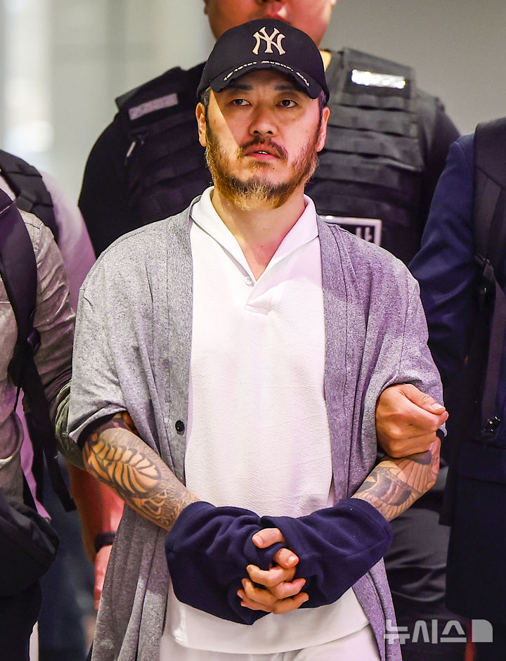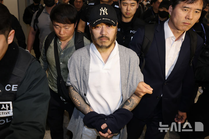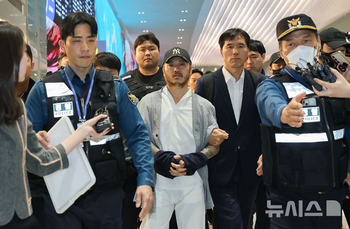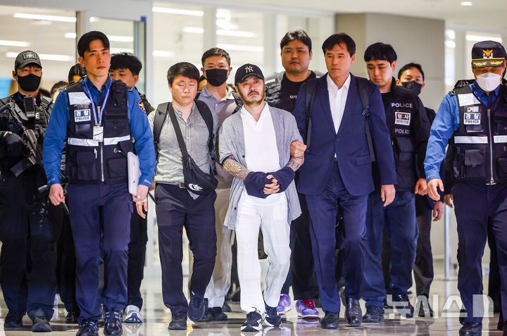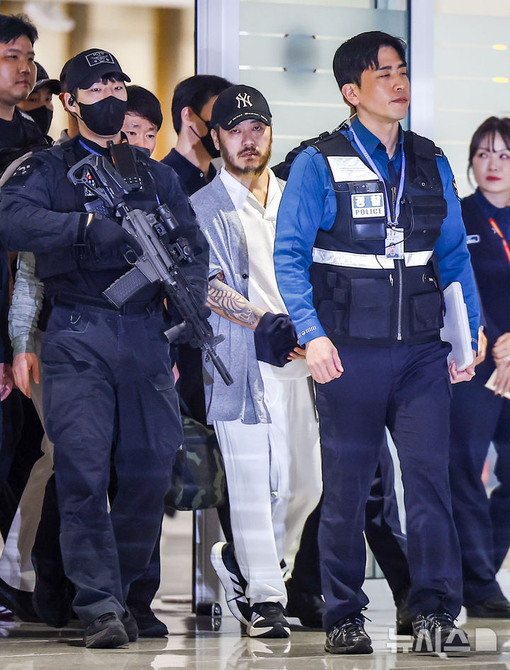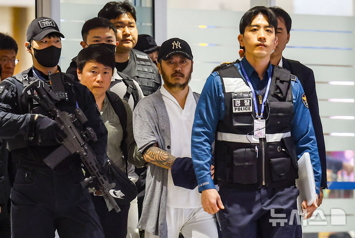 【NEWSIS】フィリピンに滞在して「全世界」と名乗り違法薬物の取引を行い、麻薬を韓国で流通させていたパク・ワンヨル受刑者が25日に送還され、仁川国際空港第2ターミナルに到着した。
