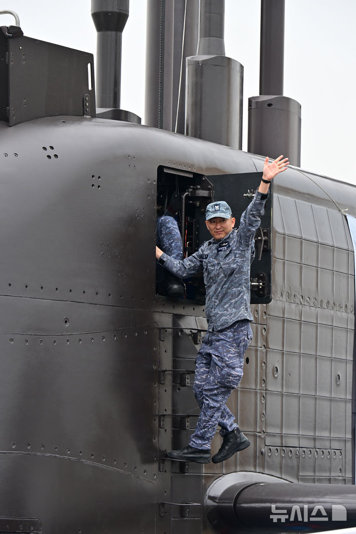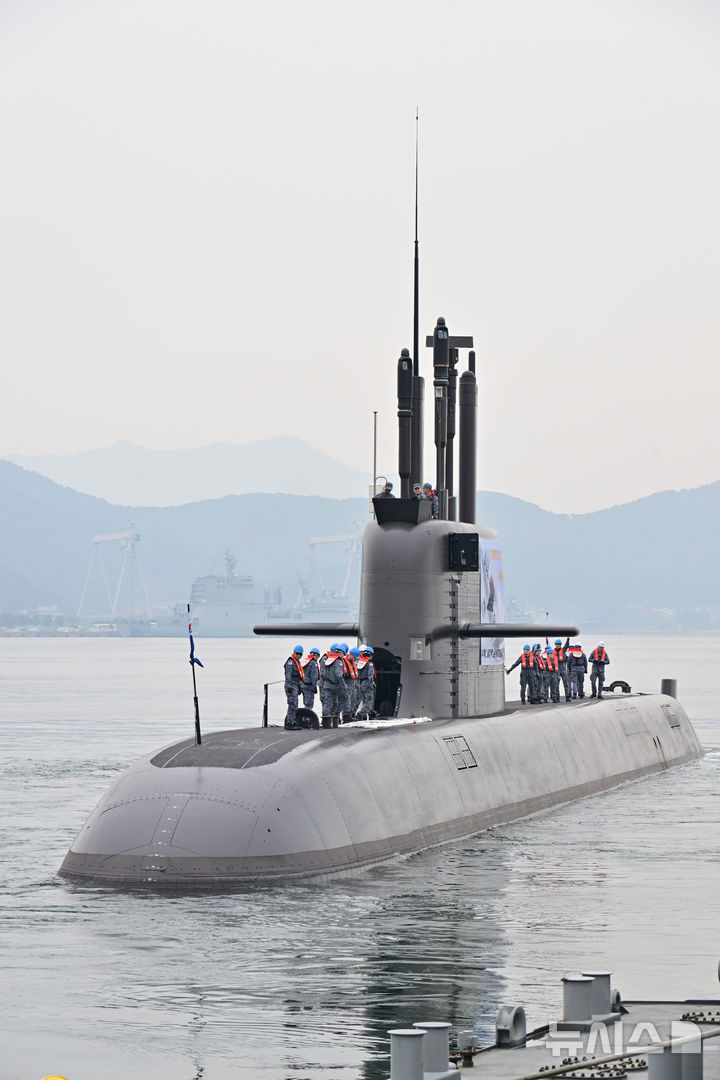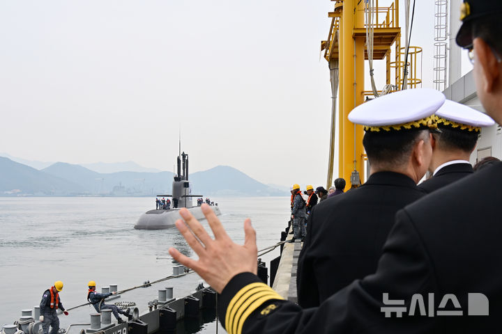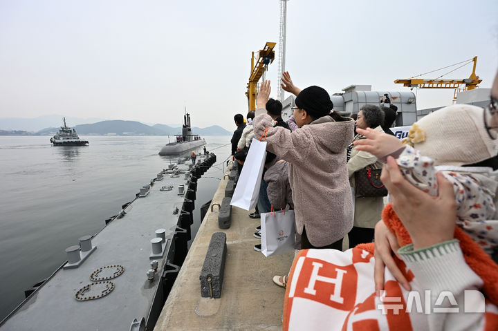 【NEWSIS】25日午前、慶尚南道昌原市の韓国海軍潜水艦司令部で、海軍関係者と乗組員の家族が見守る中、潜水艦「島山安昌浩」が韓国・カナダ合同訓練に参加するため出港した。同艦は韓国の技術で建造した3000トン級潜水艦の1番艦で、6月の訓練のために韓国の潜水艦としては初めて太平洋を横断する。鎮海からカナダのビクトリアまで、およそ1万4000キロを移動するが、これは過去最長の航行距離だ。