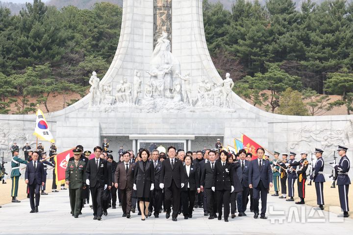 【NEWSIS】韓国の李在明(イ・ジェミョン)大統領が27日、国立大田顕忠院で開かれた第11回「西海守護の日」記念式典で記念の辞を述べているところ。