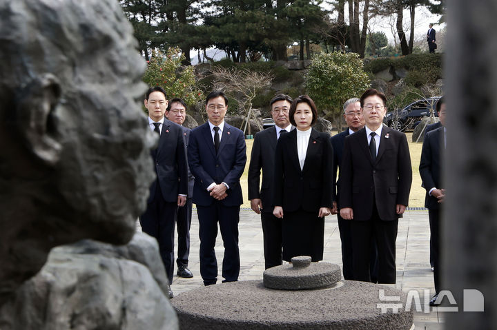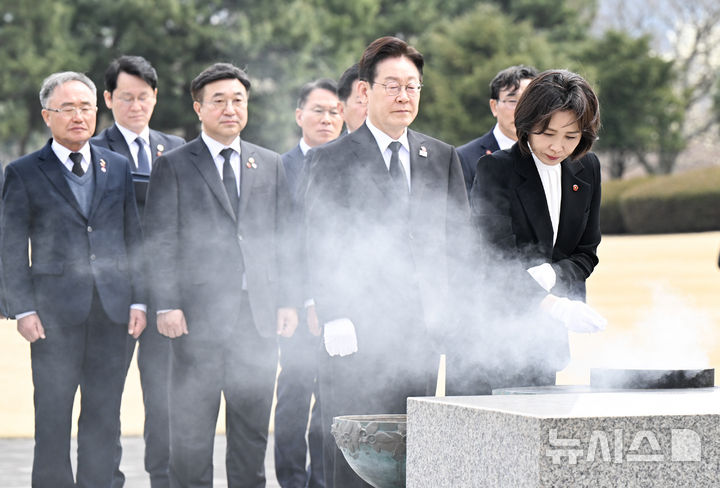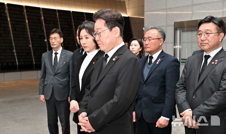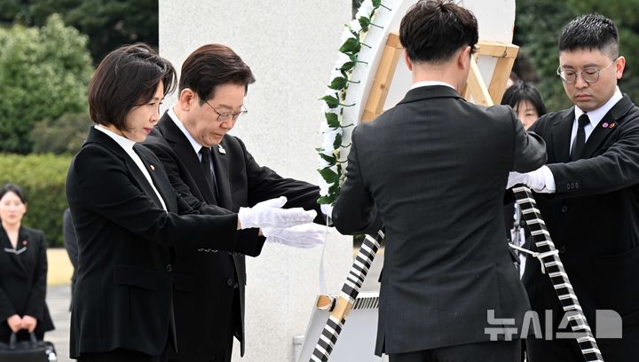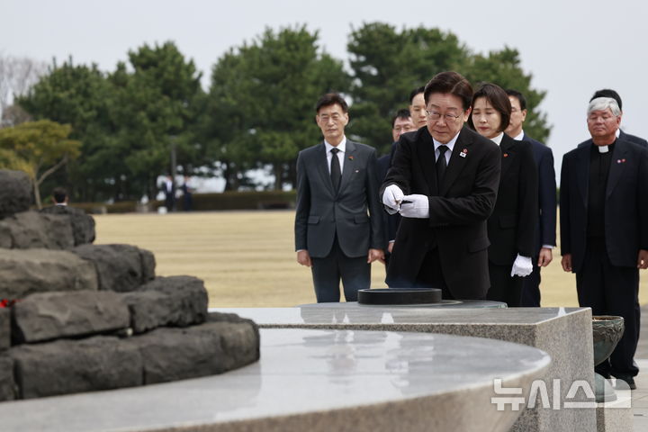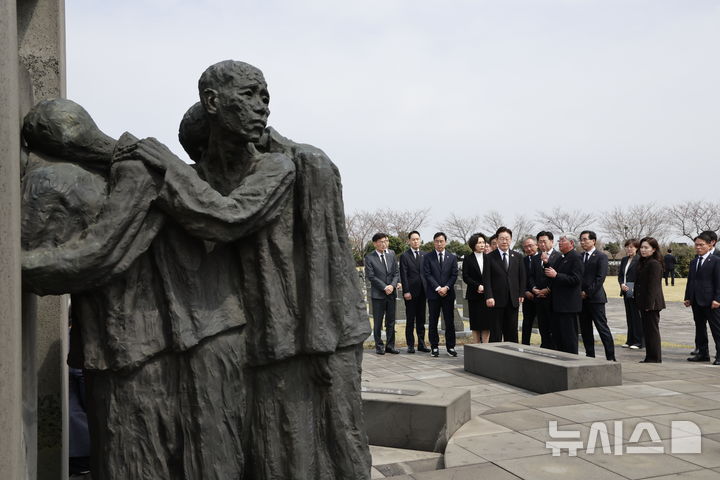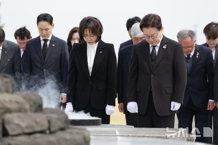 【NEWSIS】29日、済州島四・三事件(1948年4月3日)の犠牲者が眠る「済州4・3平和公園」を訪れた李在明(イ・ジェミョン)大統領と金恵景(キム・ヘギョン)夫人。