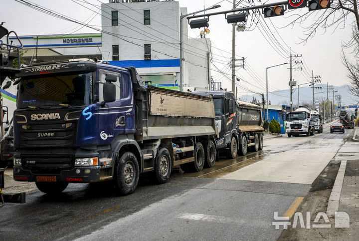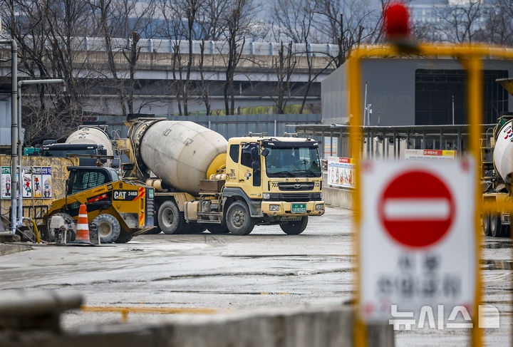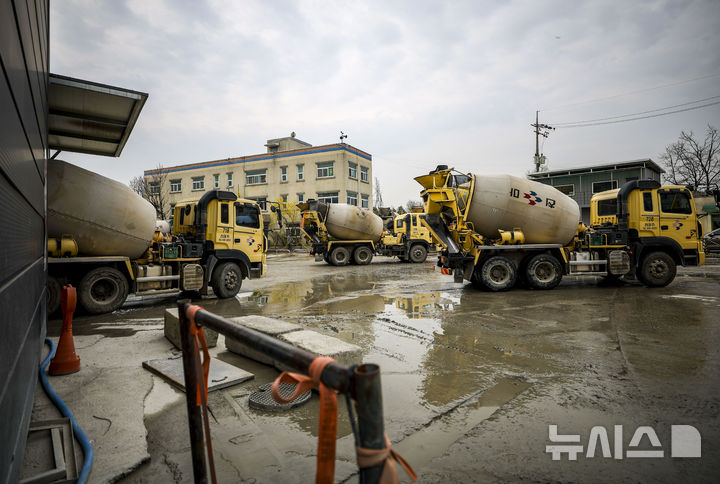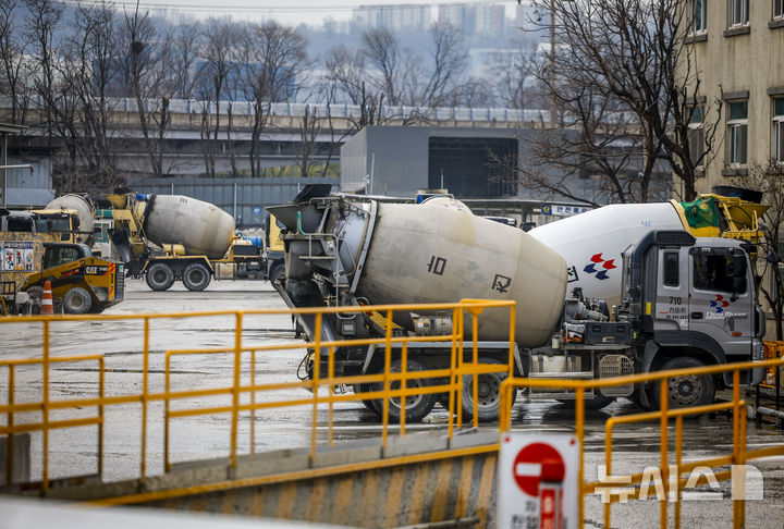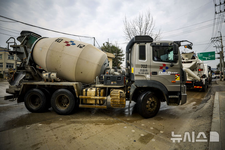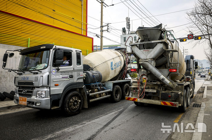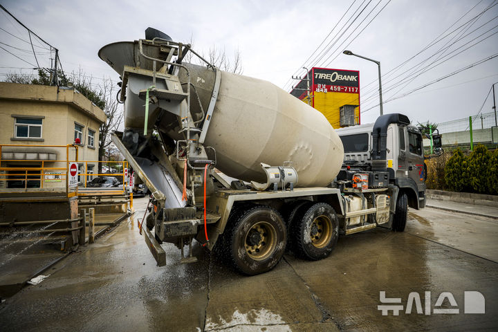 【NEWSIS】中東情勢の長期化により、石油製品「ナフサ」の在庫が急減し、建設業界が状況を注視している。写真は30日、ソウルの生コンクリート工場から移動するミキサー車。