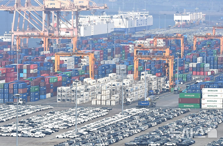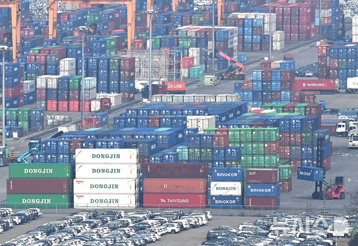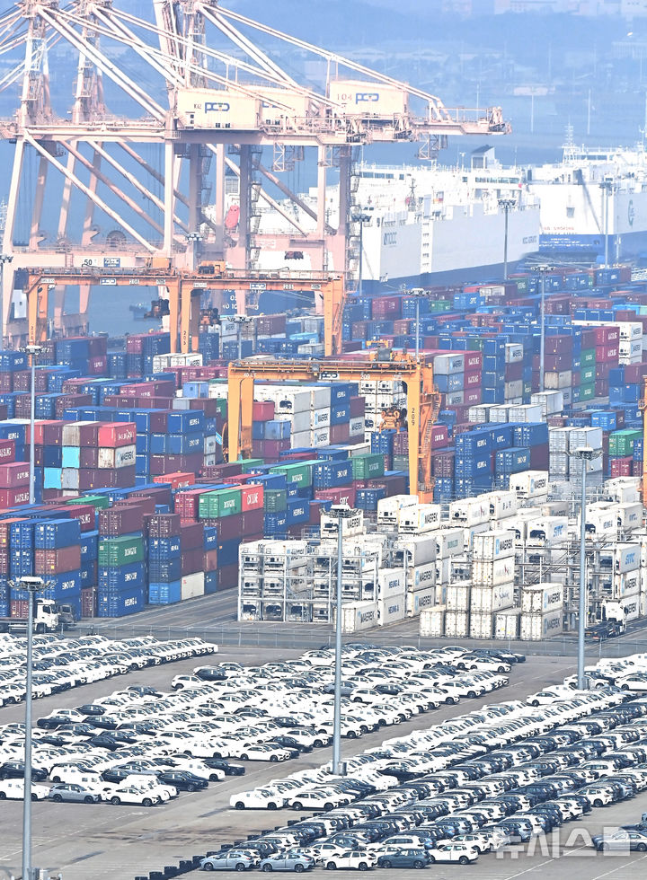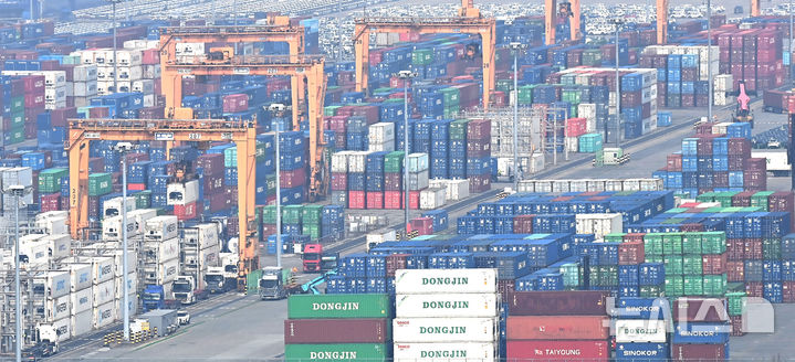【NEWSIS】中東問題にもかかわらず、韓国の輸出が史上初めて月800億ドル(現在のレートで約12兆7000億円。以下同じ)を突破した。産業通商部(省に相当)が1日に発表した3月の輸出入動向によると、輸出は前年同月より48.3%多い861億3000万ドル(約13兆6800億円)だった。これは、月間の輸出基準で過去最高実績となる数字。操業日数を考慮すると、一日平均輸出も41.9%増加した37億4000万ドル(約5940億円)を記録し、過去最高実績を更新した。写真は1日、京畿道平沢市浦升邑の平沢港に積み上げられた輸出入コンテナの様子。