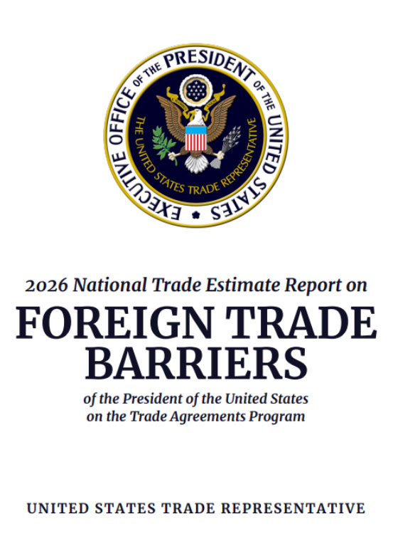 ▲米通商代表部(USTR)が発行した2026年国別貿易障壁(NTE)報告。