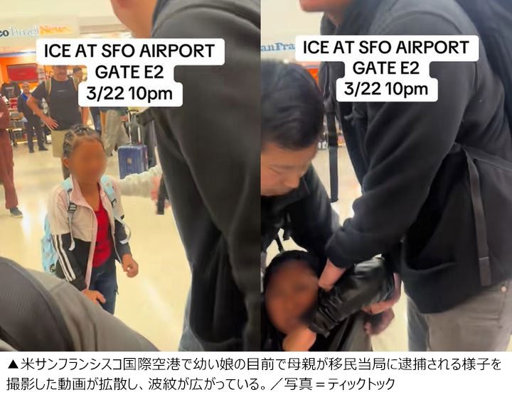 【NEWSIS】米サンフランシスコ国際空港で22日夜、幼い娘の前で母親が移民捜査局に逮捕される様子を撮影した動画が拡散し問題になっている。