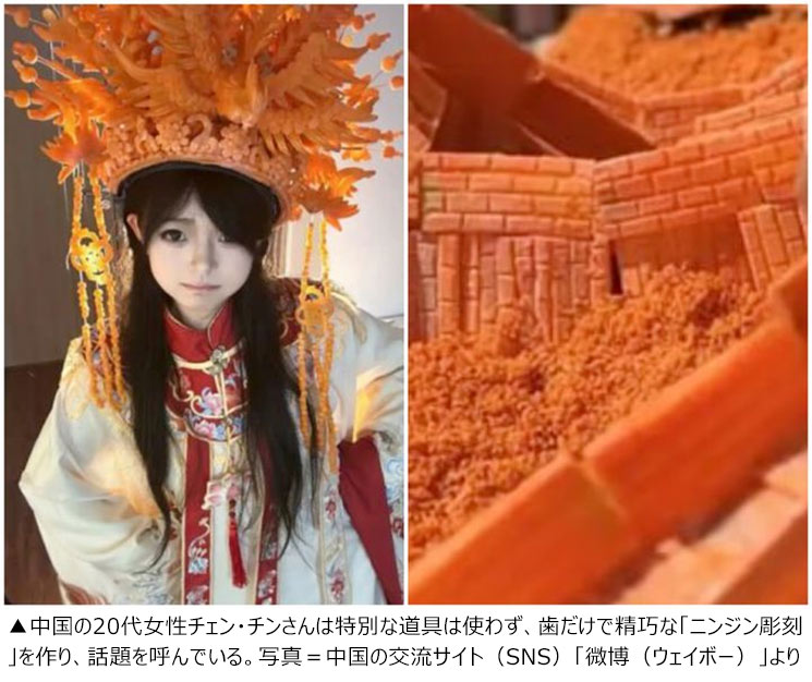 【NEWSIS】中国の20代の女性が特別な道具を使わず、歯だけで精巧な「ニンジン彫刻」を作り、話題となっている。香港紙サウスチャイナ・モーニングポスト(SCMP)が26日(現地時間)に報道した。